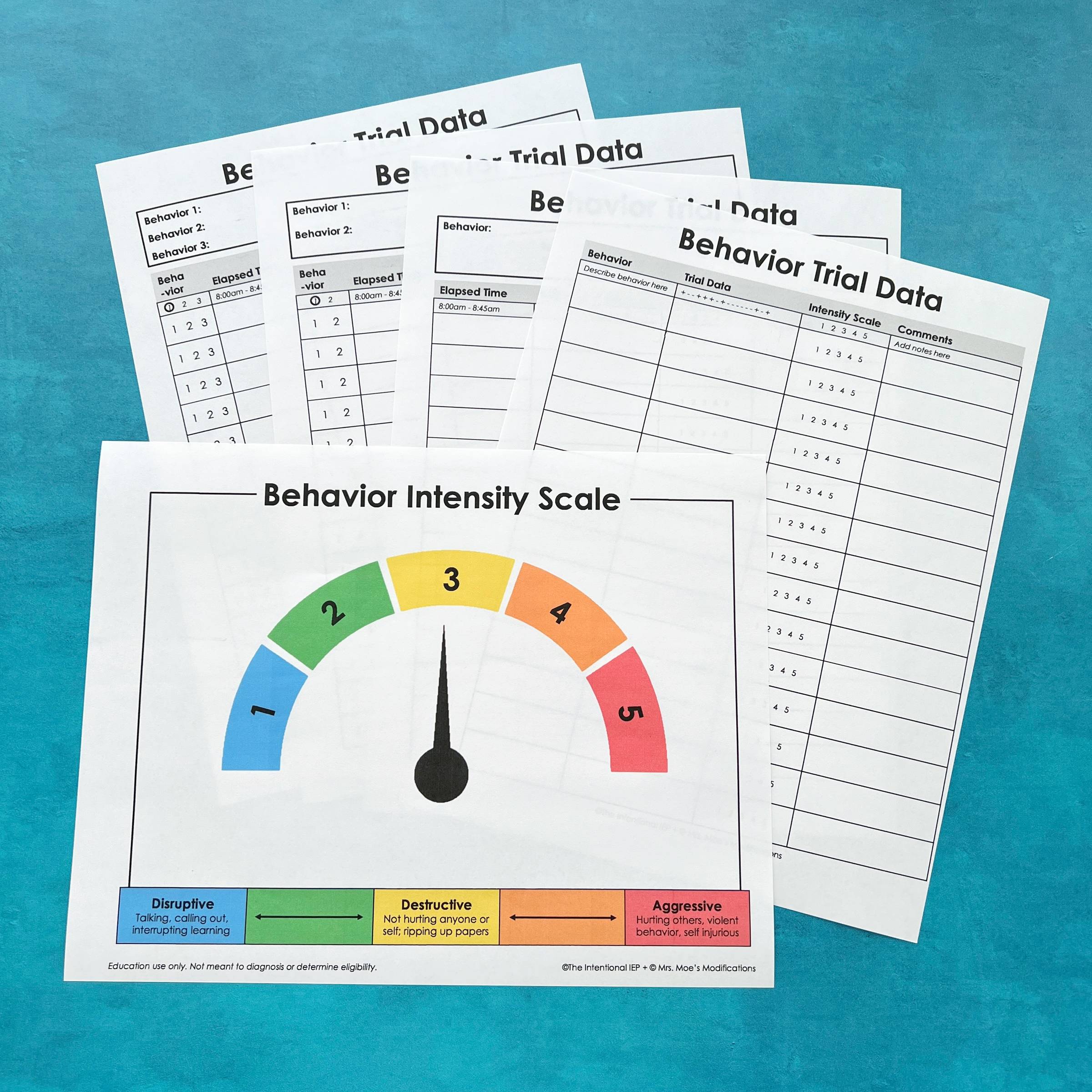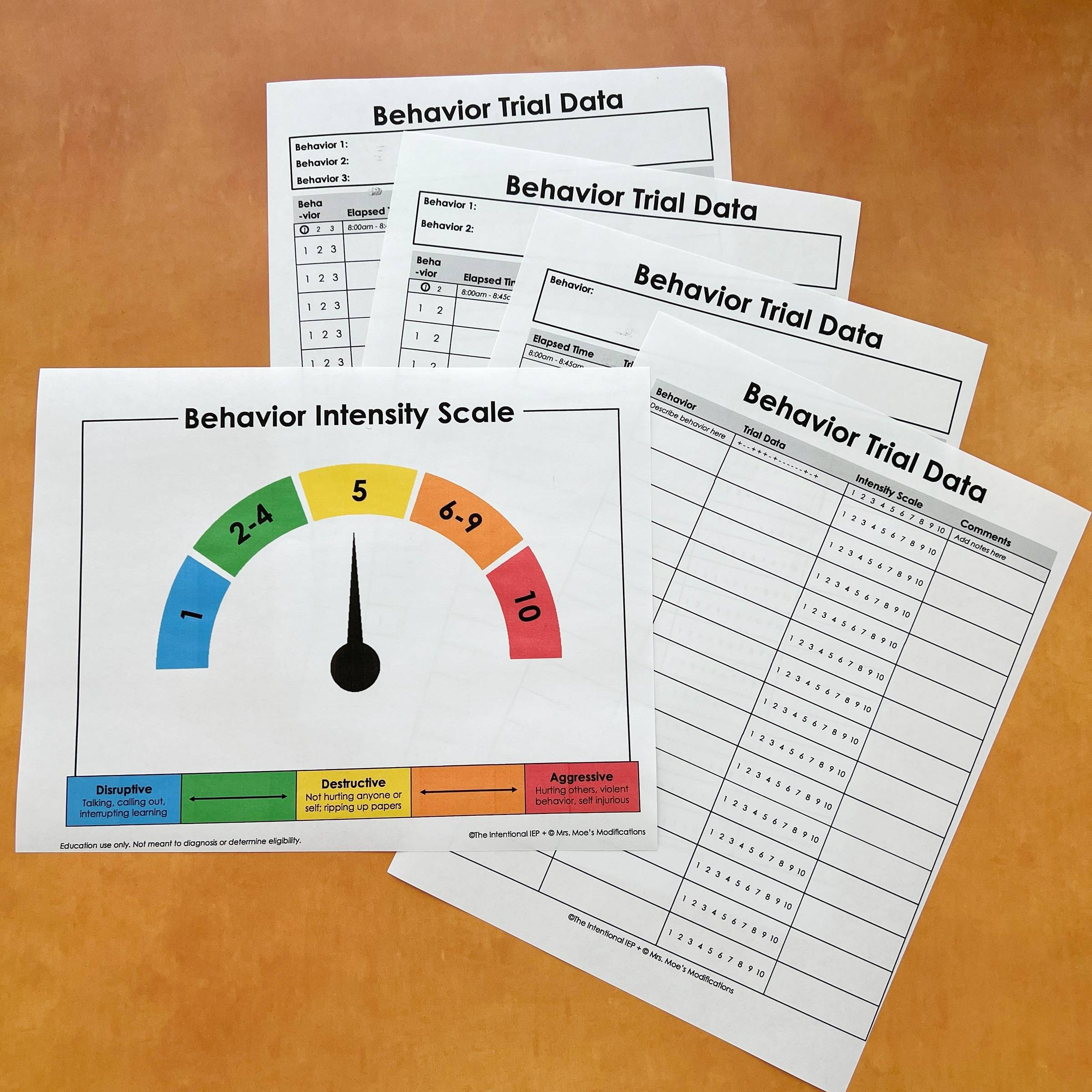 This 14-page free download includes a basic rundown of the 4 functions of behaviors with a list of the 31 most commonly seen classroom behaviors and the most common function. You also receive a behavior IEP goal formula, with 5- and 10- spot intensity scales and behavior data sheets.
